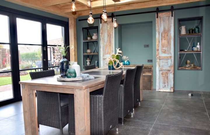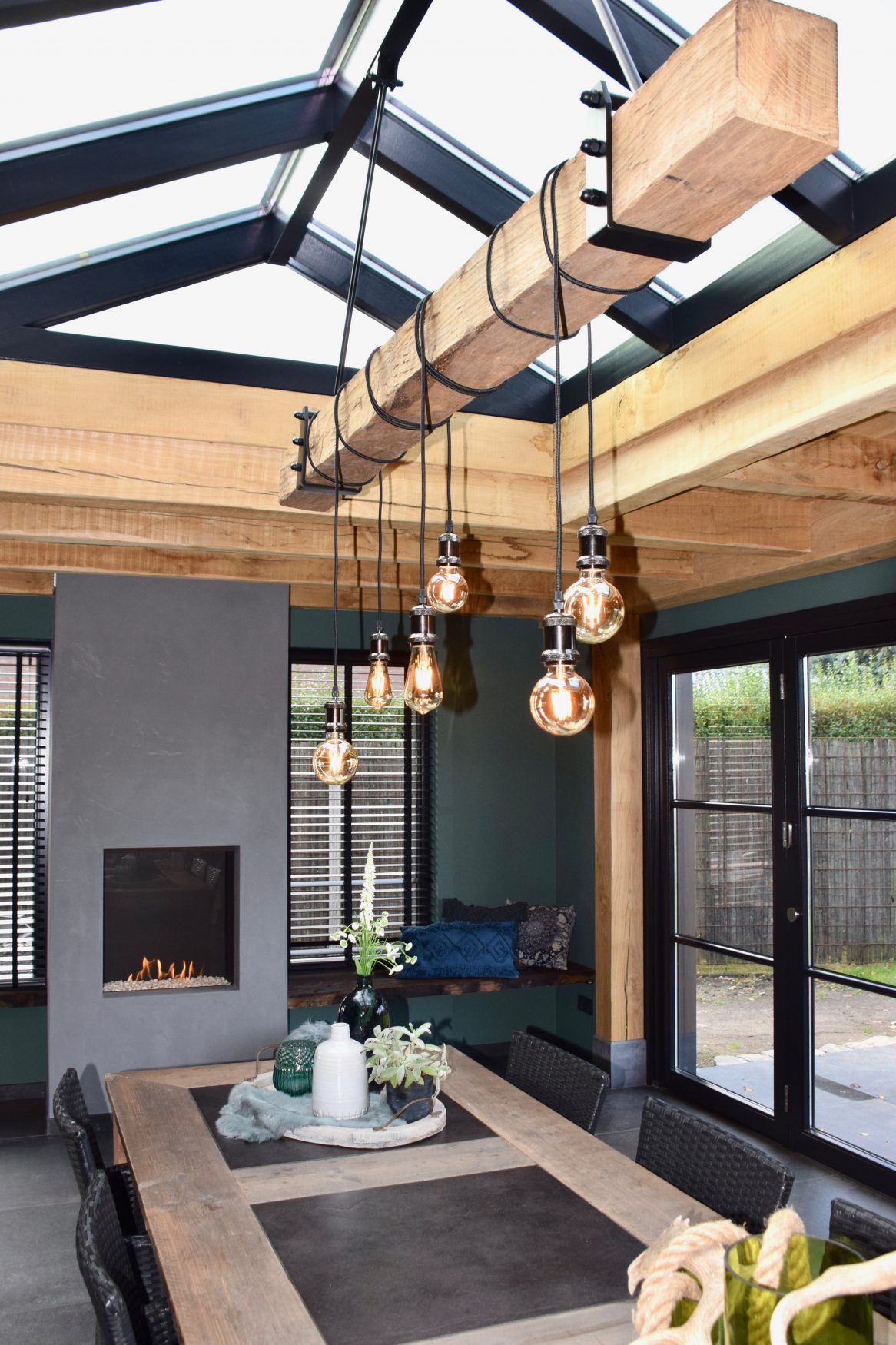 Dit is super geslaagd. De tuinkamer is licht, heel erg warm en sfeervol. Je kunt hier lekker op het bankje langs de haard een boek lezen, van de tuin genieten of met vrienden lazy sundayen aan de mooie tafel.